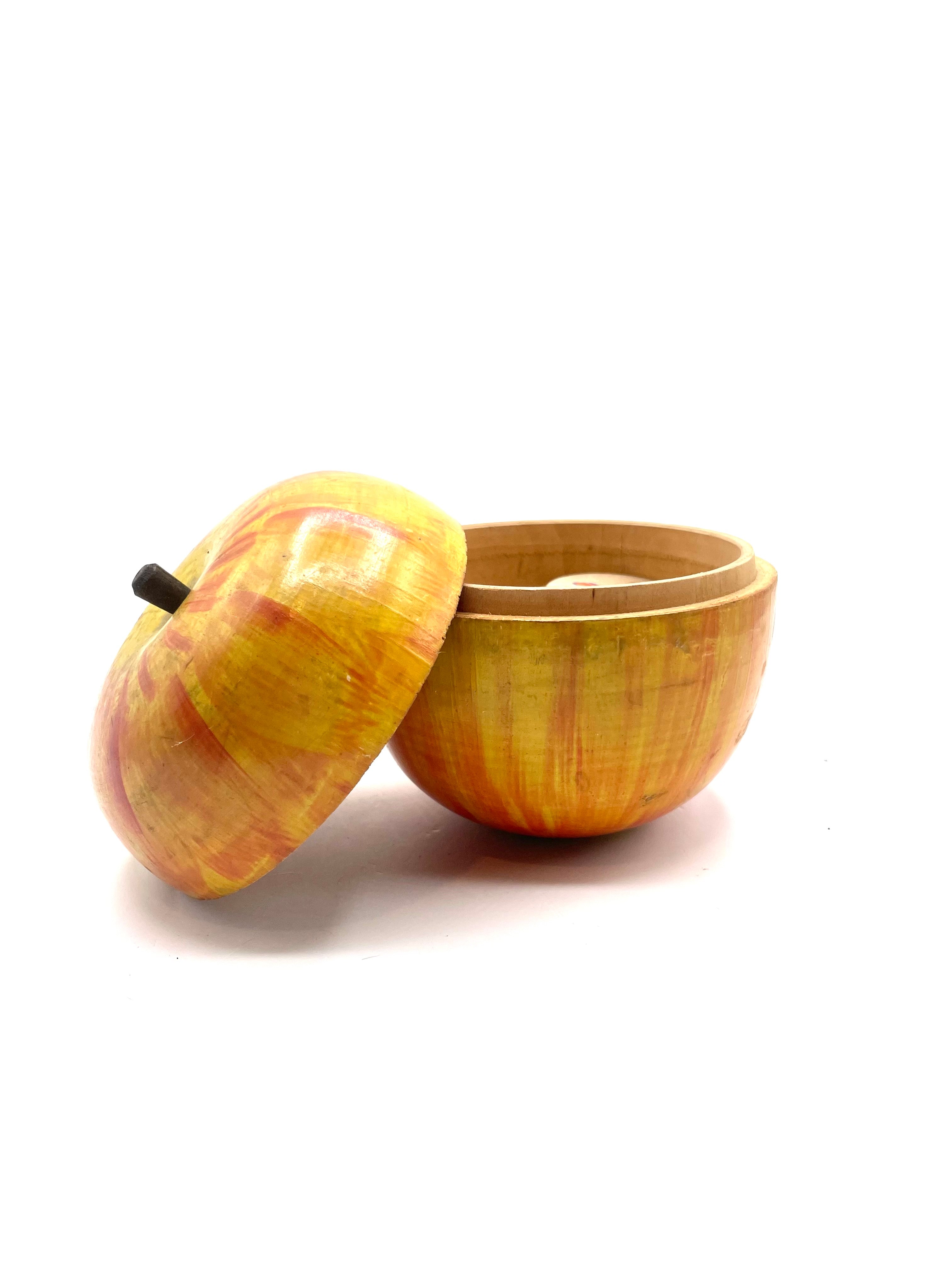 - Design: The game is self-contained within a hand-painted wooden apple box, which opens to reveal the game mechanism inside. The exterior features painted yellow and red accents designed to look like a real apple.