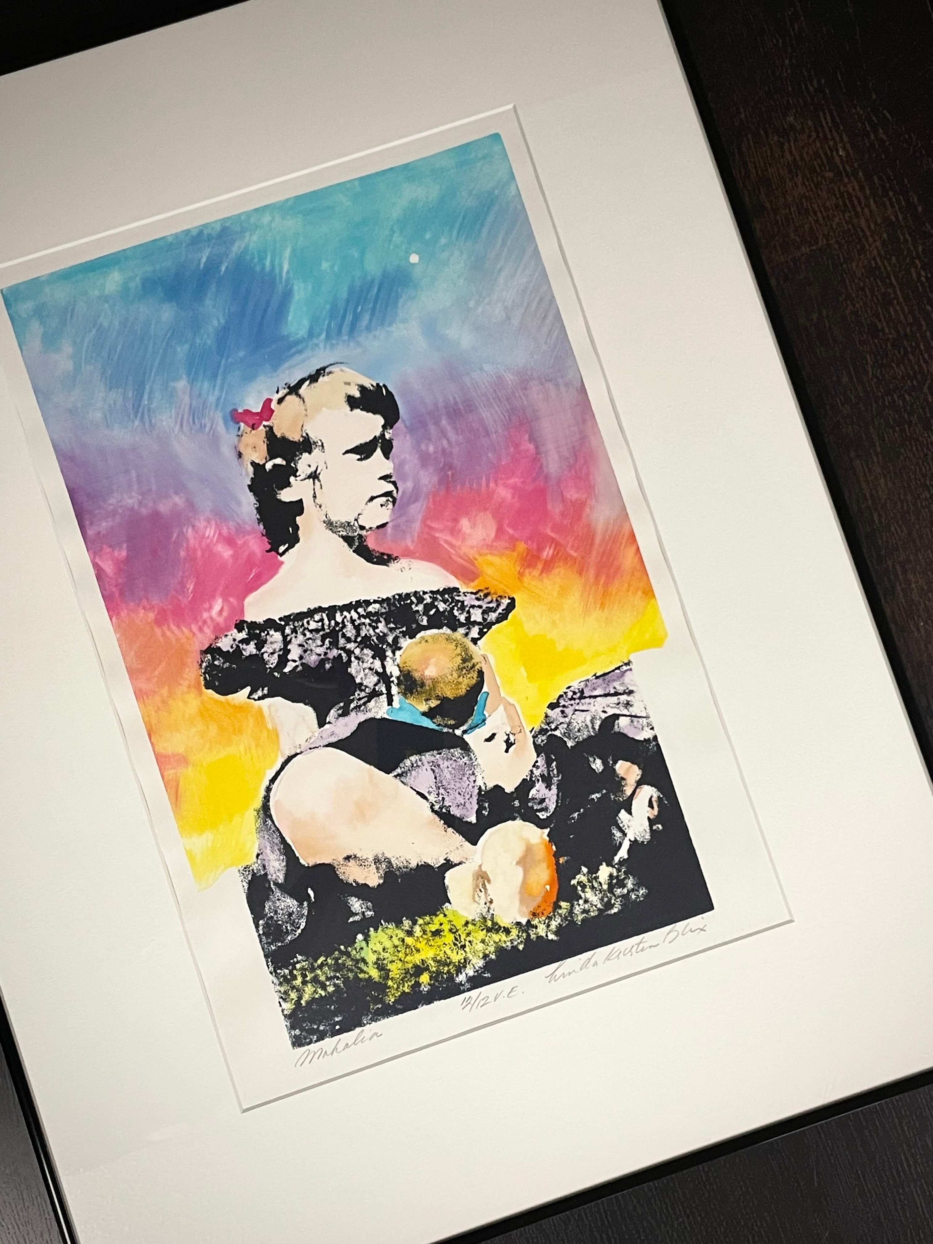- The artwork is a print of a girl and boy at sunset or sunrise.