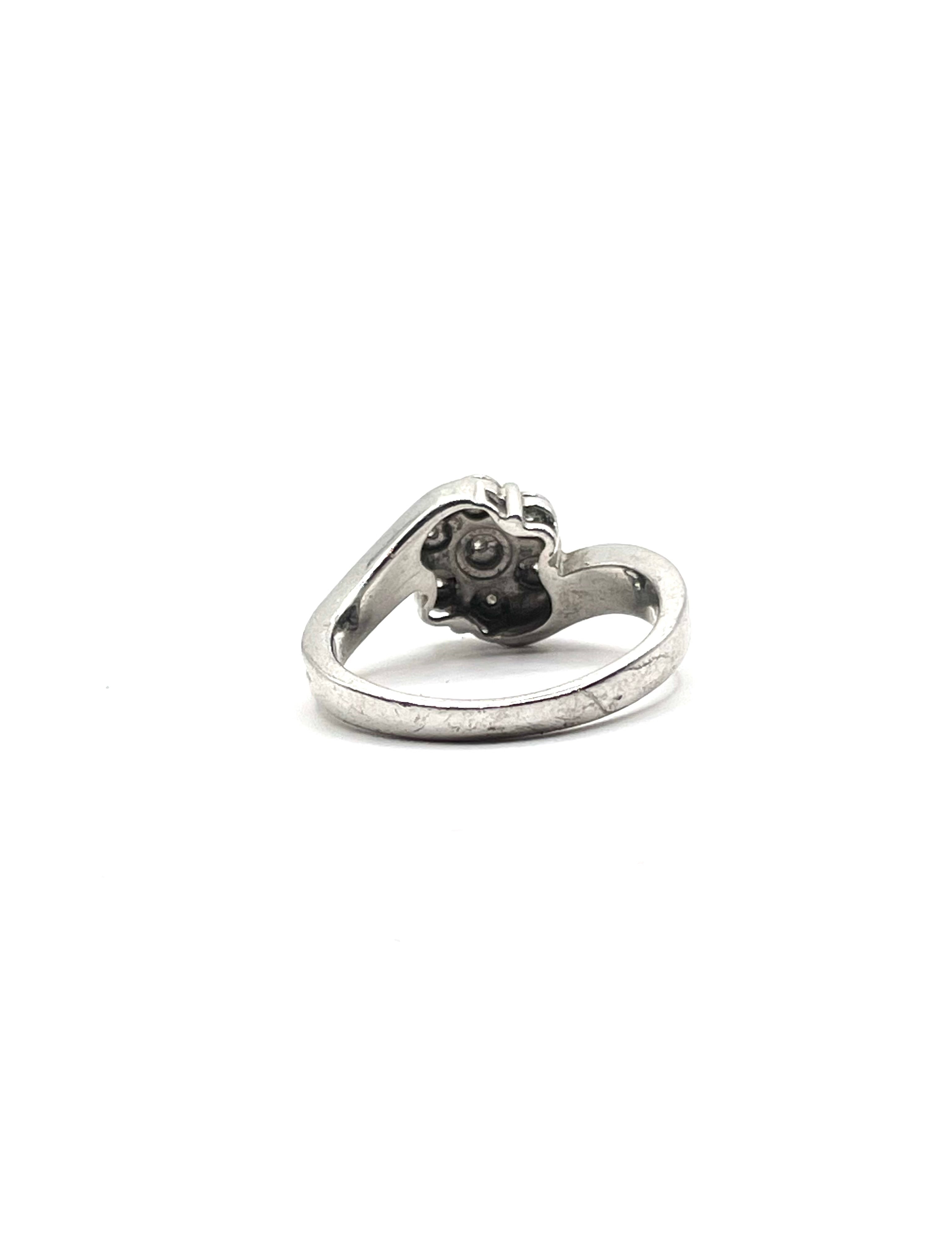 • Design: The ring features a seven-stone cluster designed to look like a daisy or flower, with a central stone and six surrounding "petals".