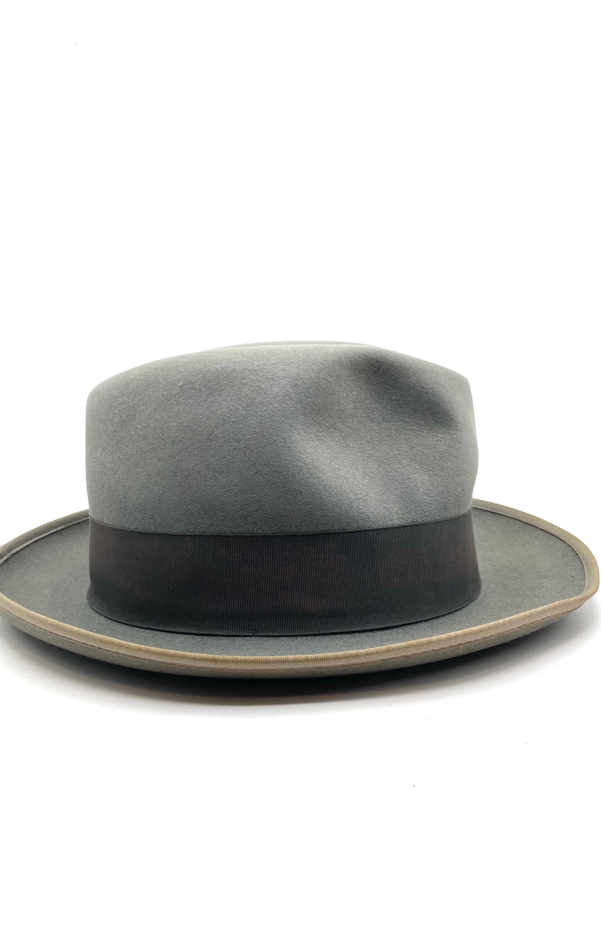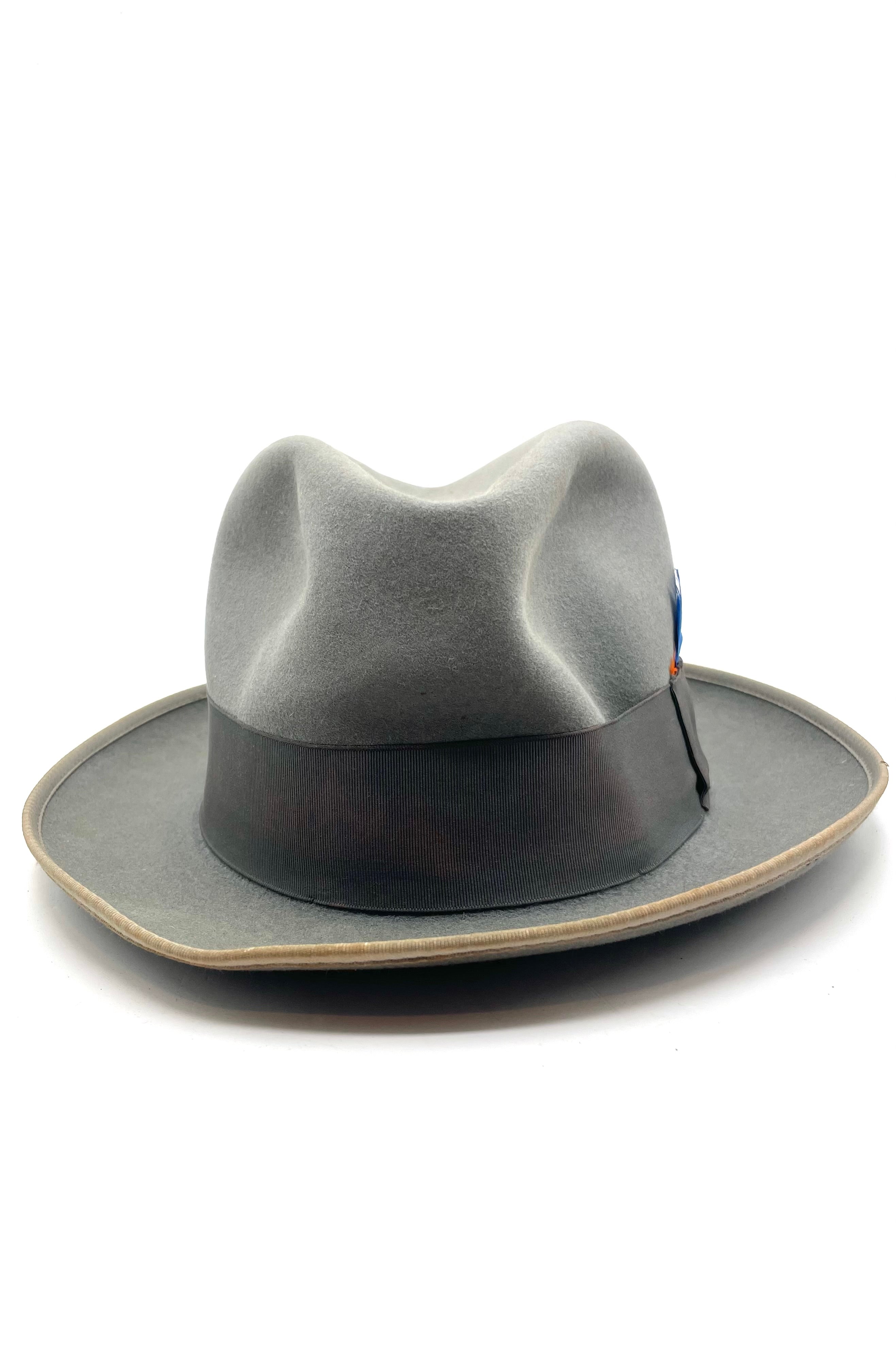 - Design: It features a classic pinch-front or teardrop crown and a brim that appears to have a bound edge.
