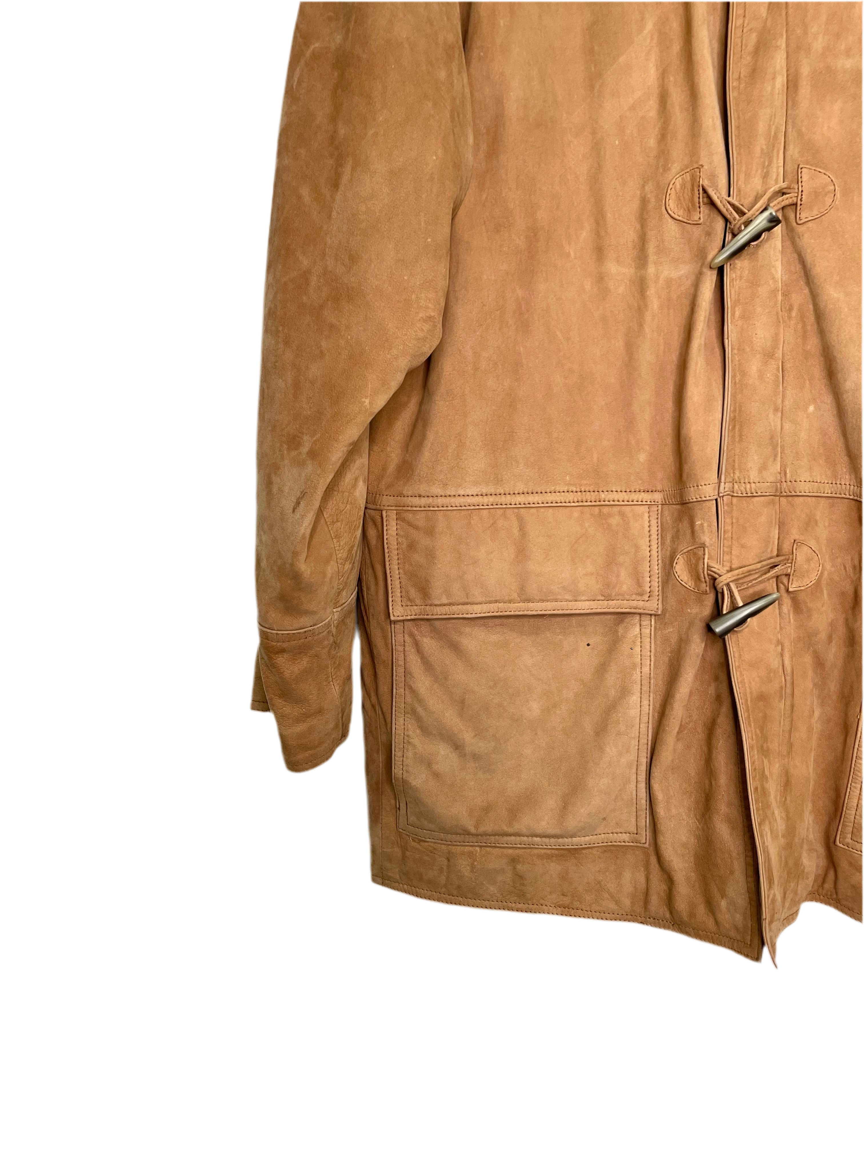 - Closure: Designed with a zipper closure complemented by toggle fastenings for added style and security.