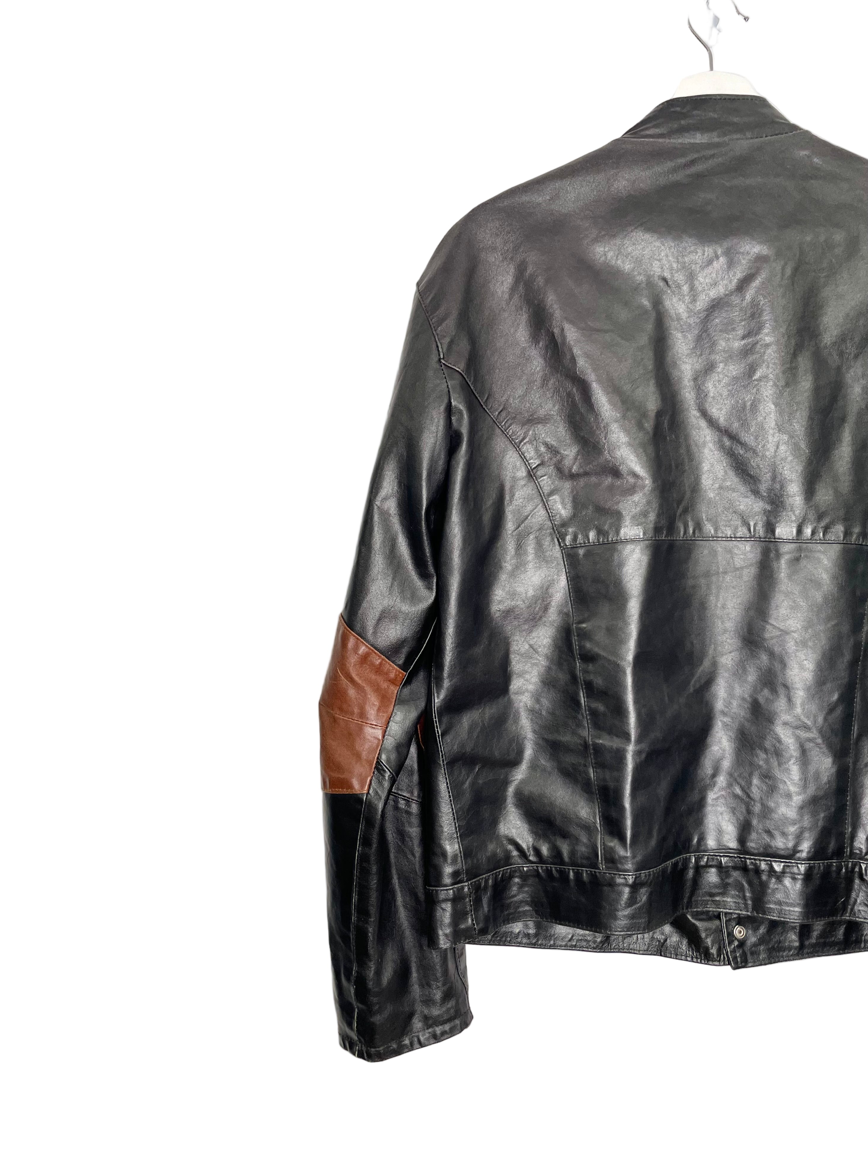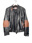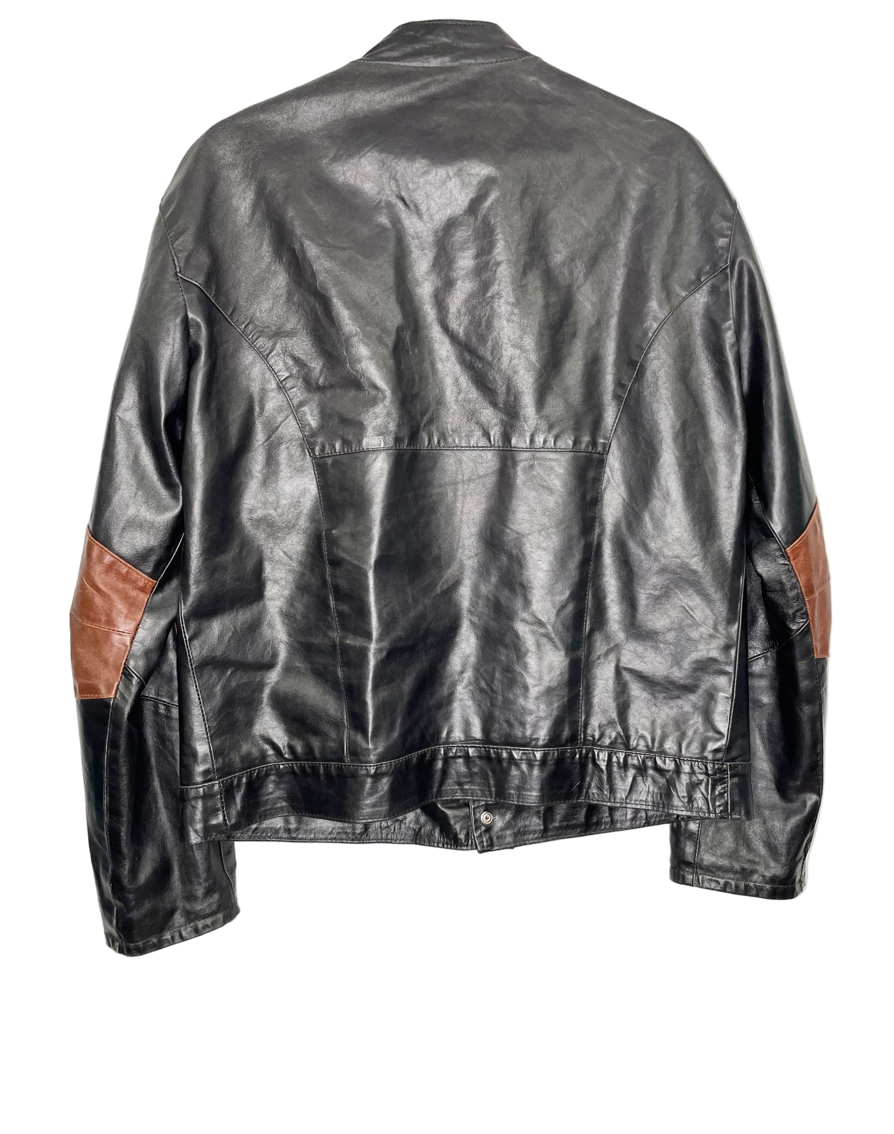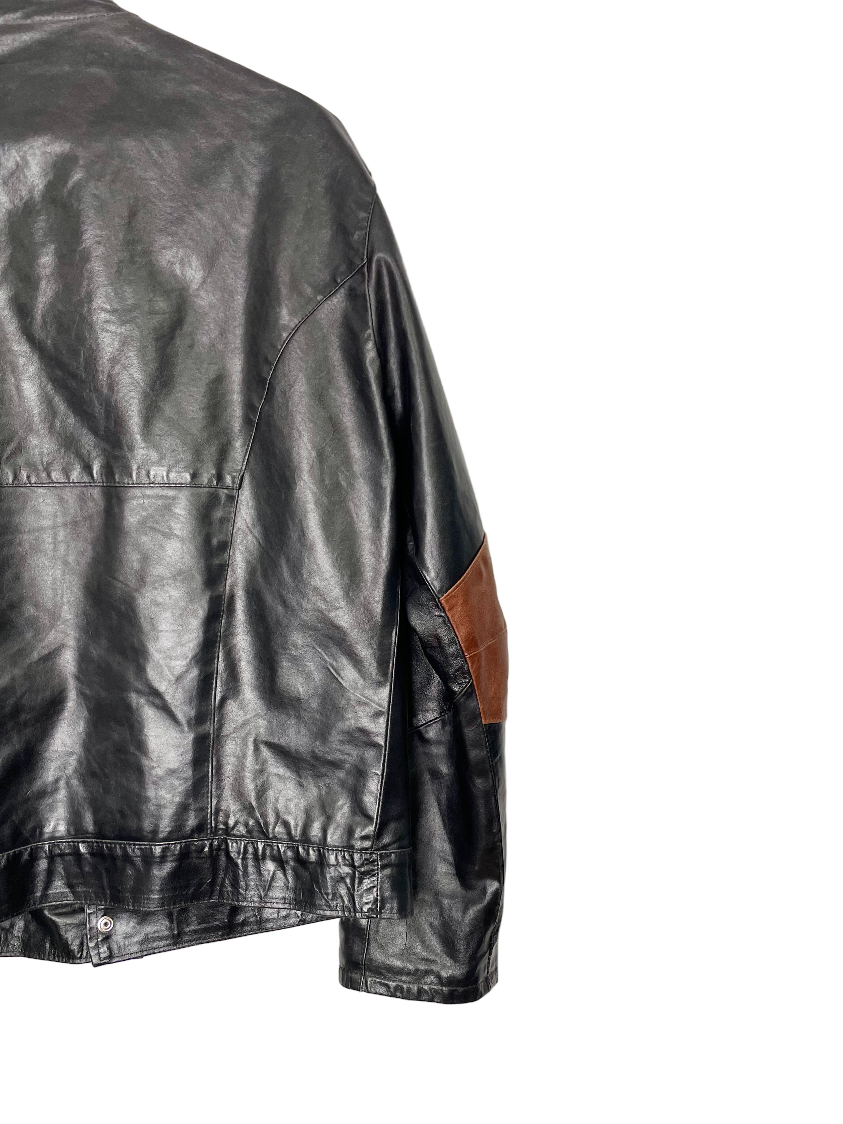 • Premium Leather. Constructed from smooth black leather with contrasting brown leather panels on the shoulders and arms for a distinctive two-tone look.