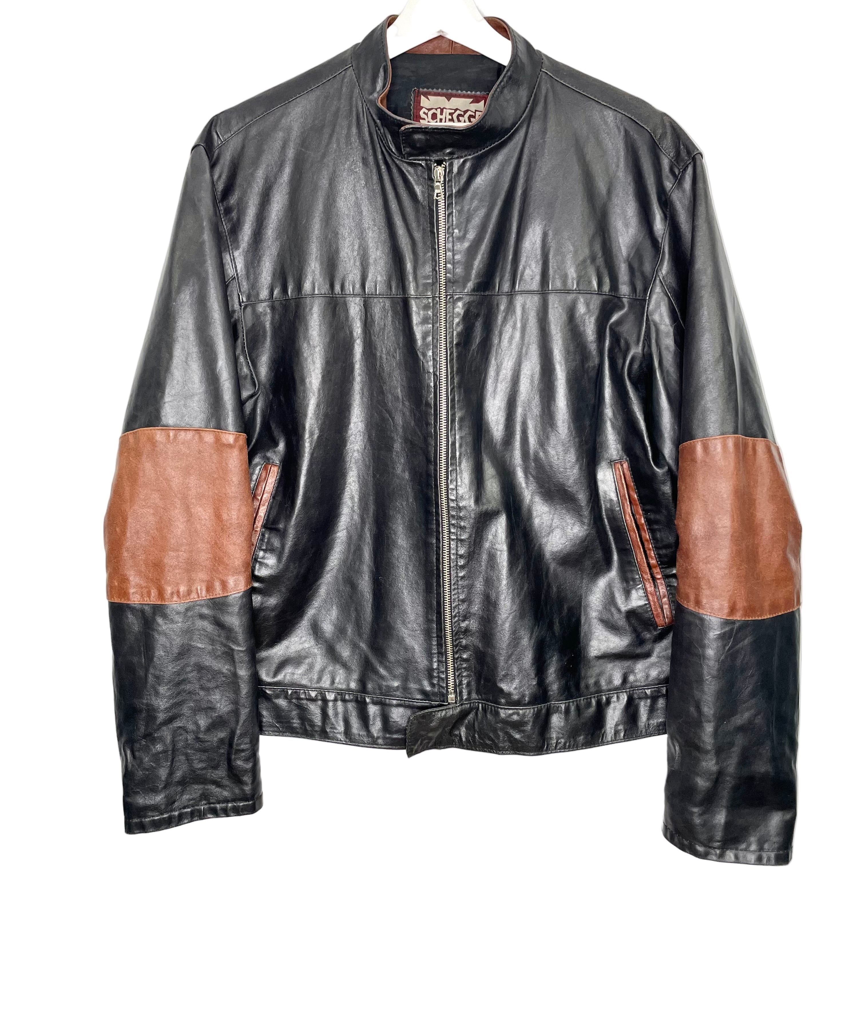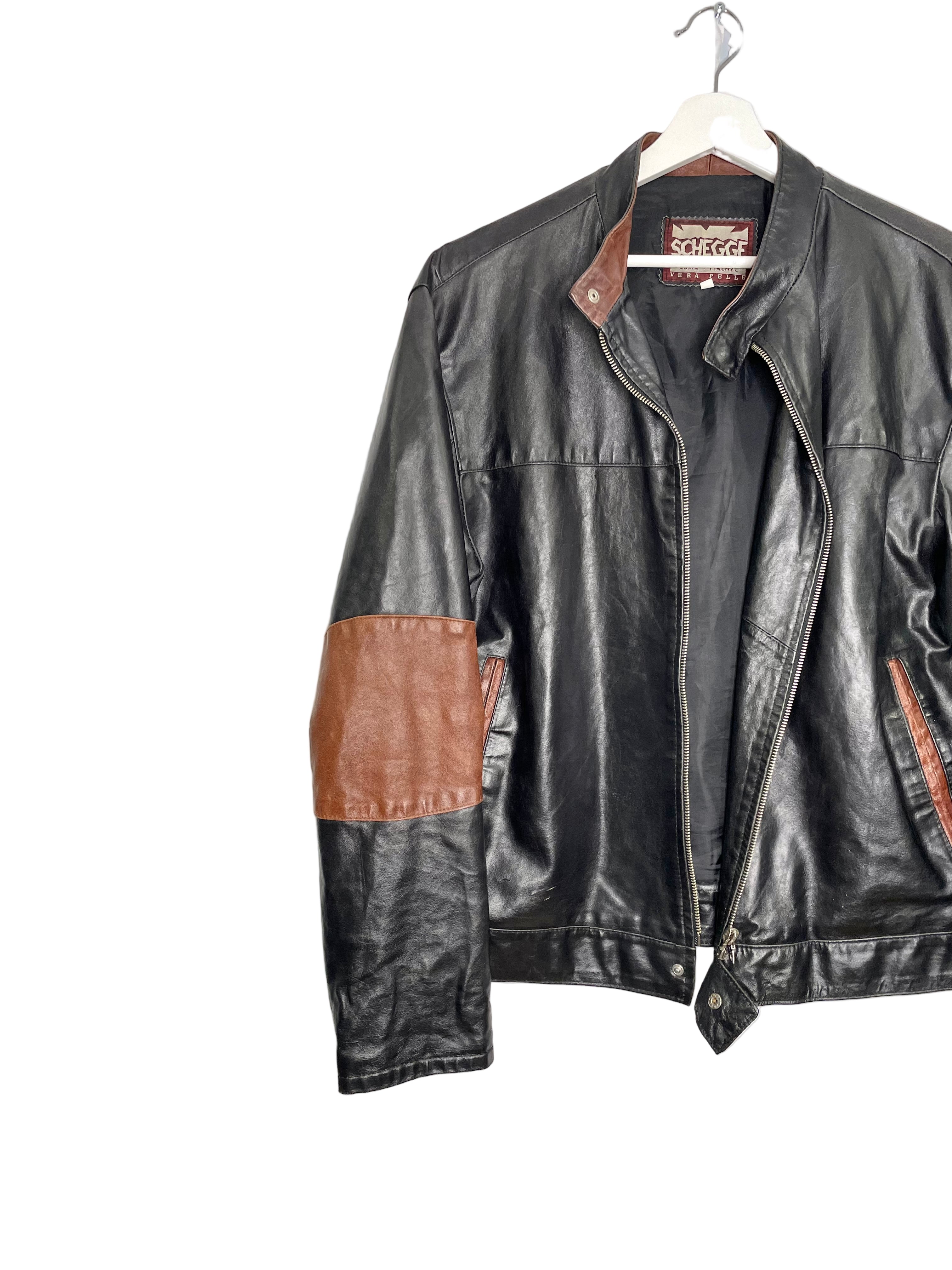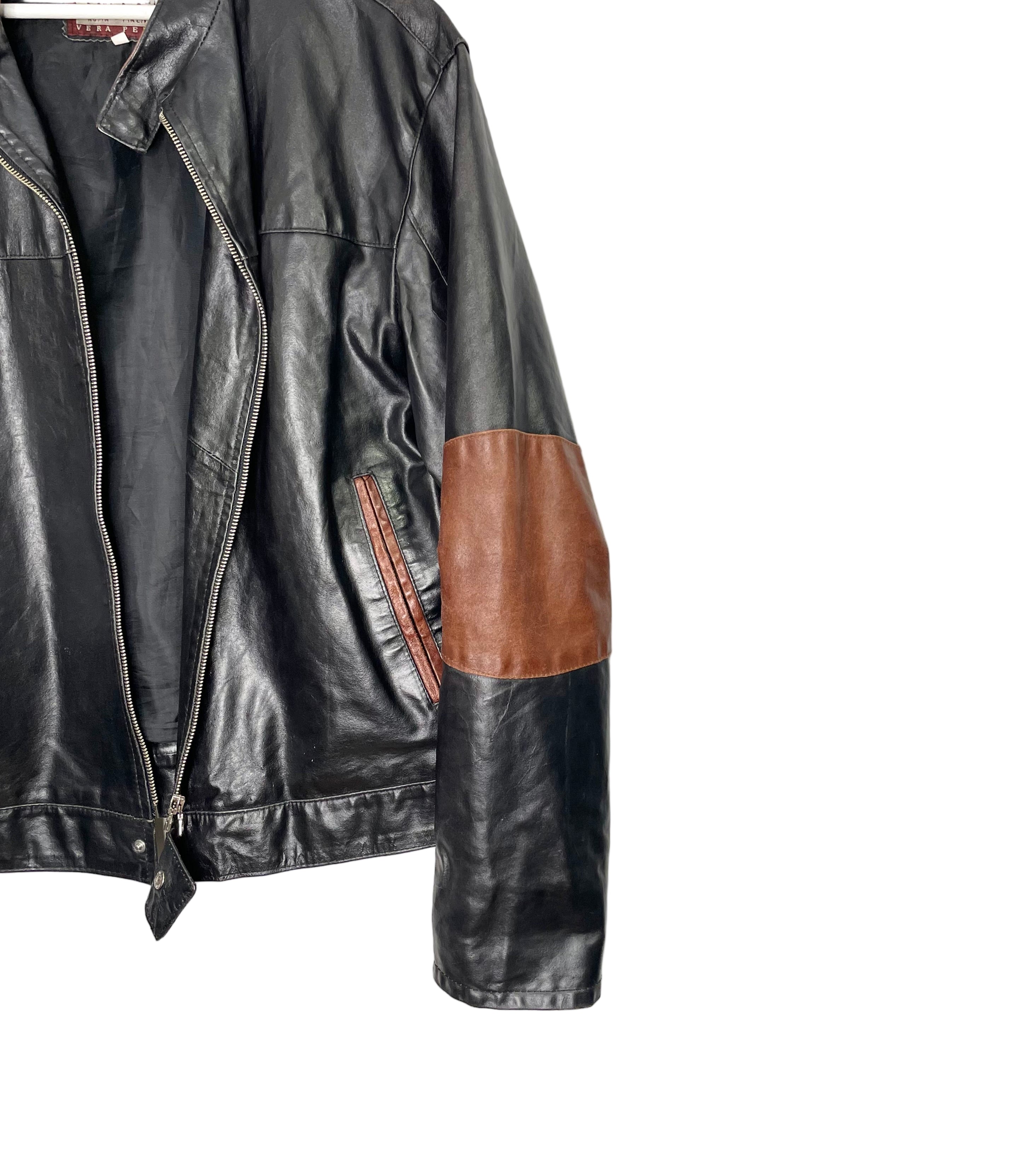 • Premium Leather. Constructed from smooth black leather with contrasting brown leather panels on the shoulders and arms for a distinctive two-tone look.