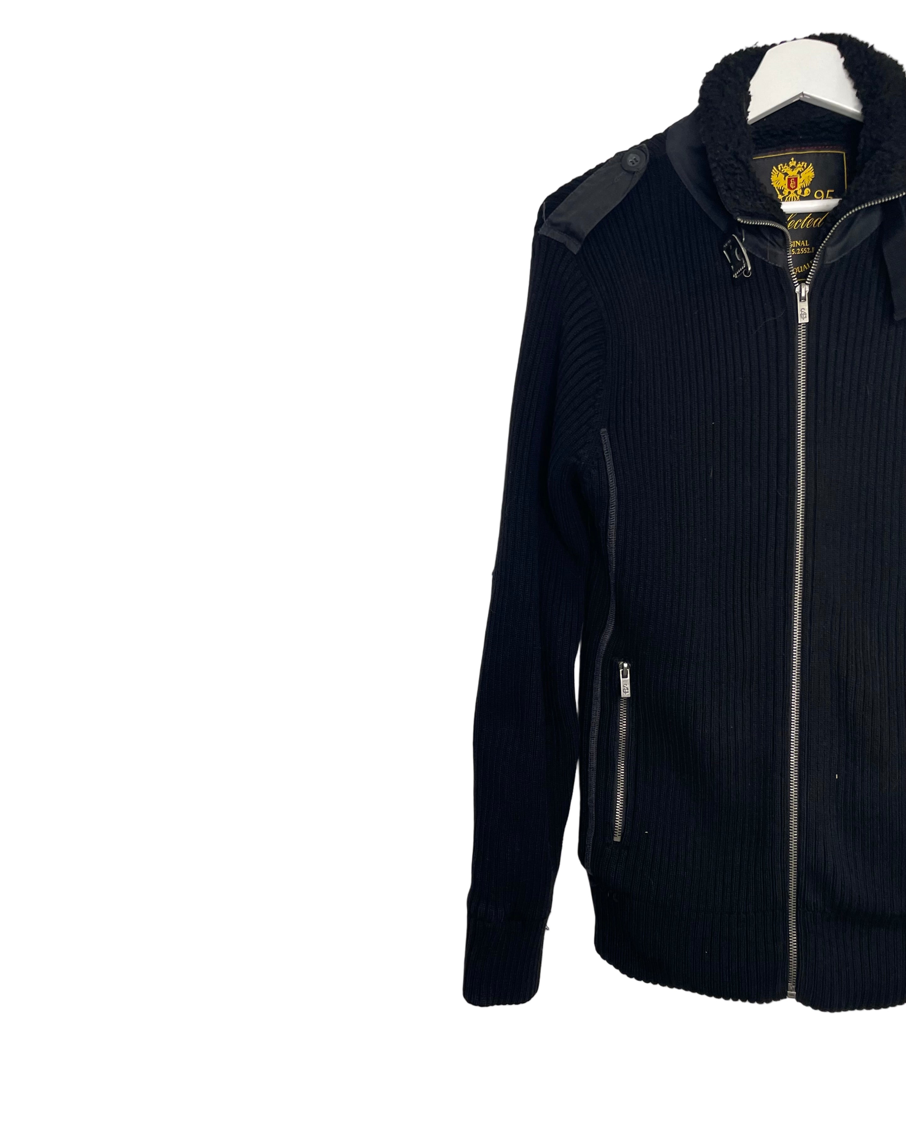 - Style: Sleek zip-up cardigan featuring military-inspired accents for a modern, structured look