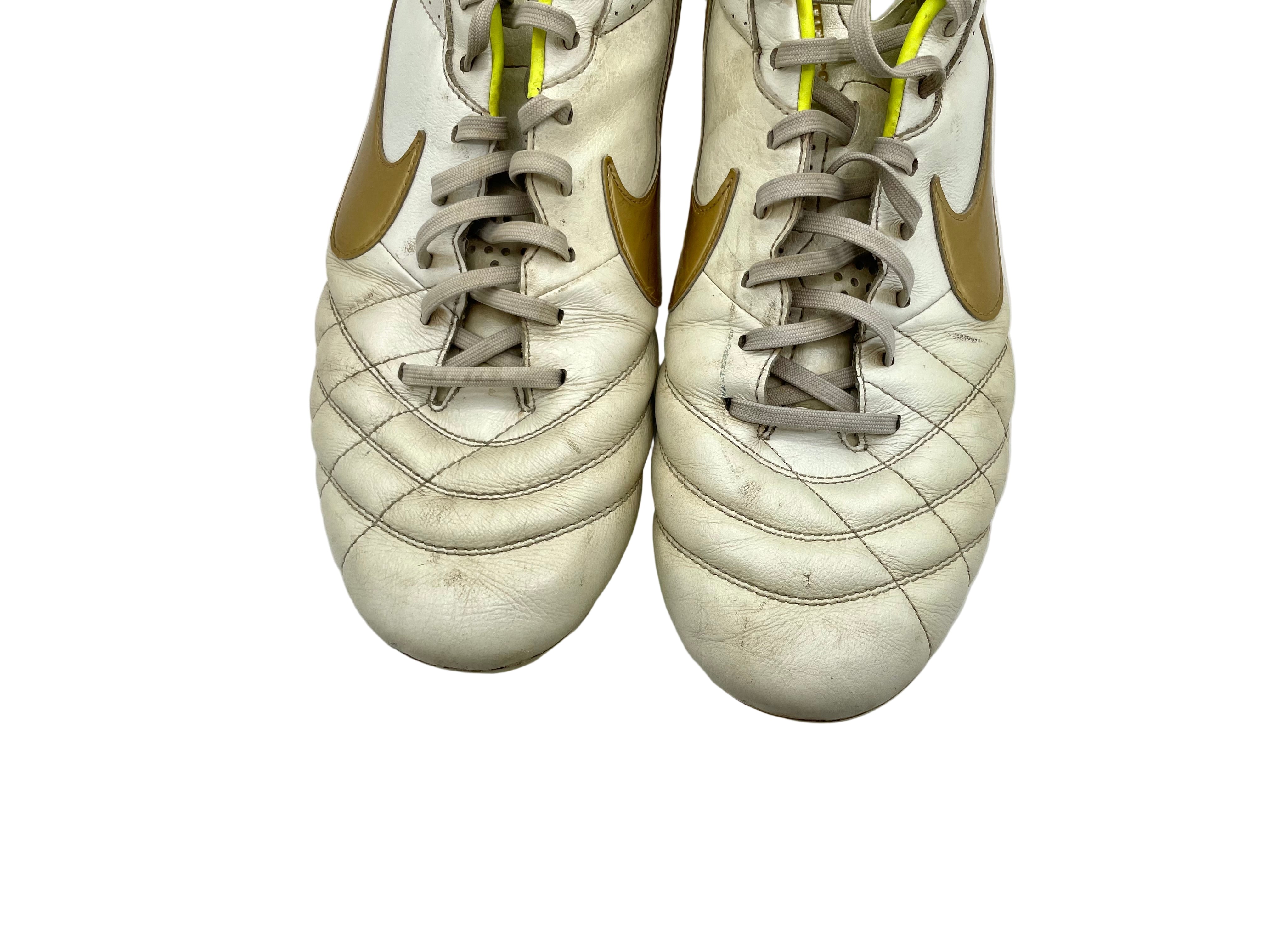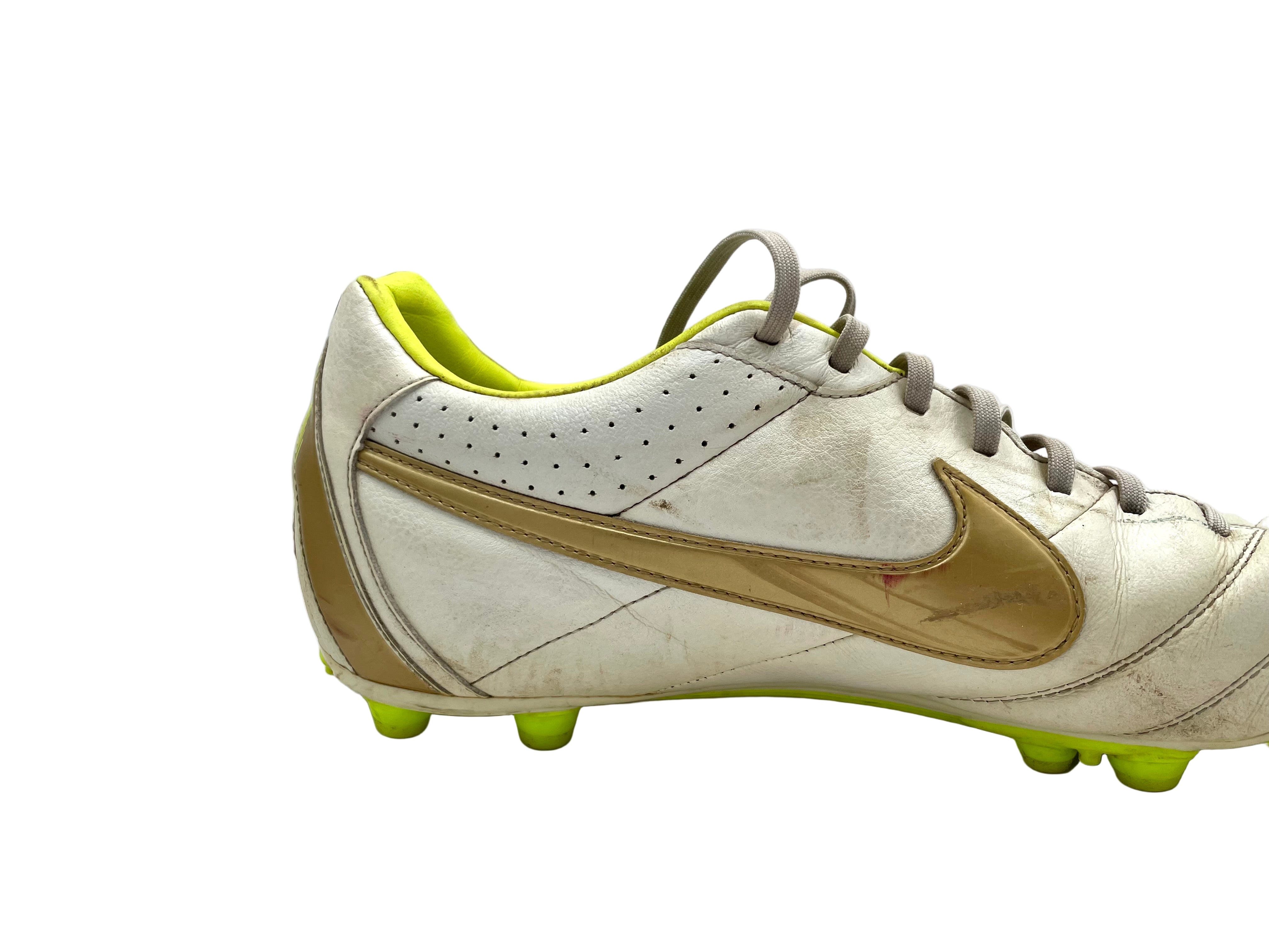 - Colorway: Summit White/Metallic Gold/Volt (featuring a white upper, gold Nike Swoosh, and neon "Volt" yellow lining/studs)