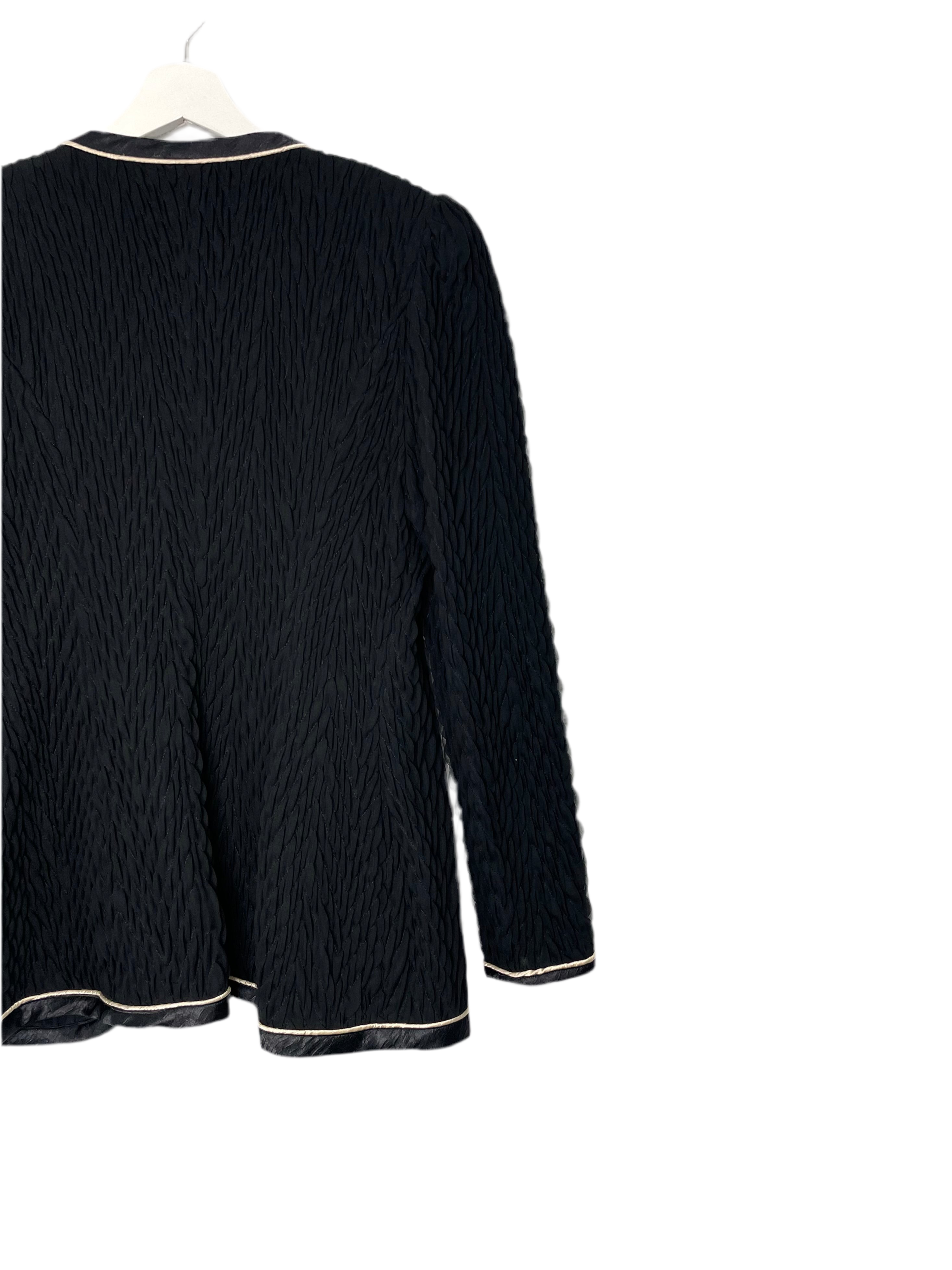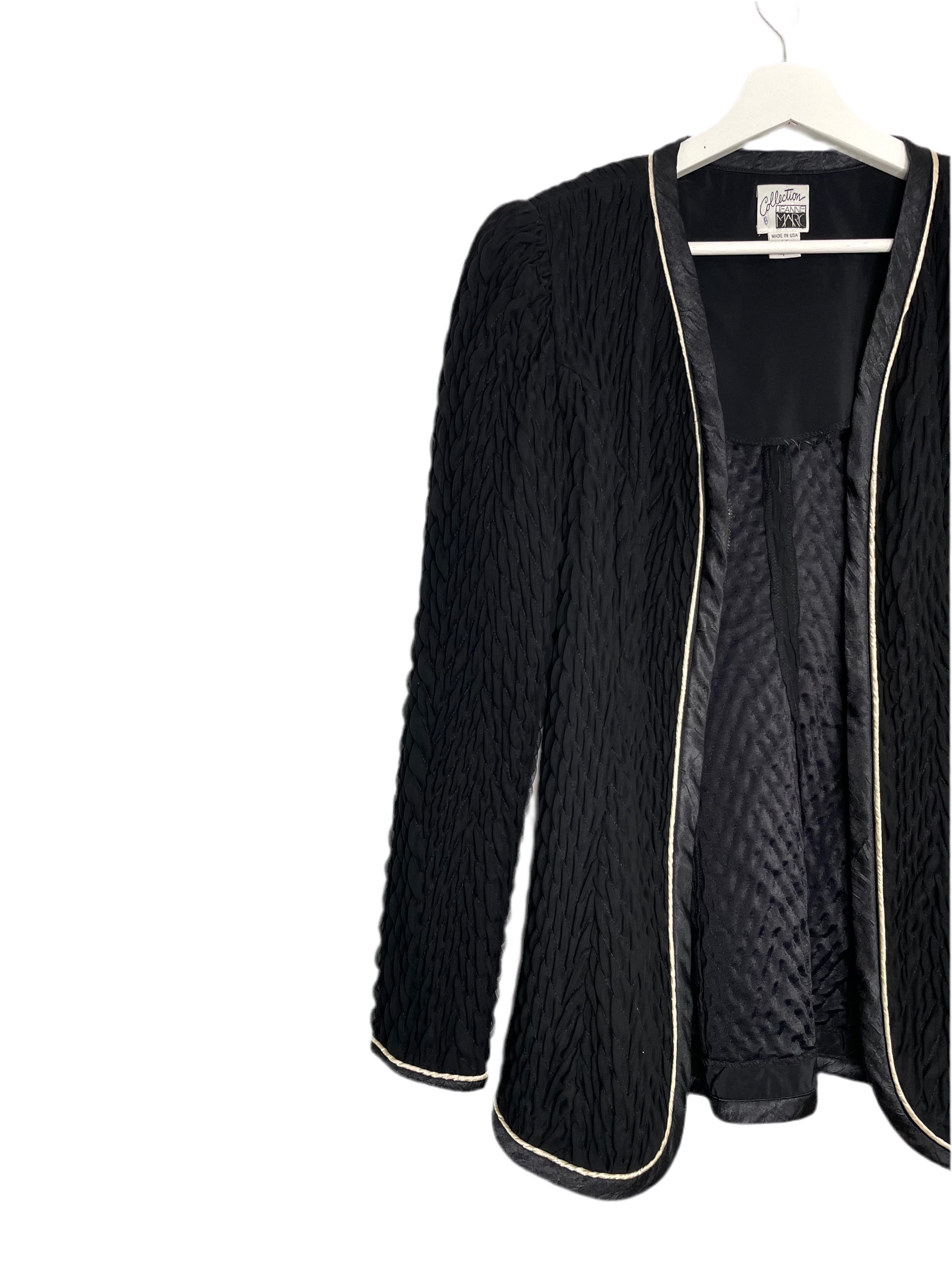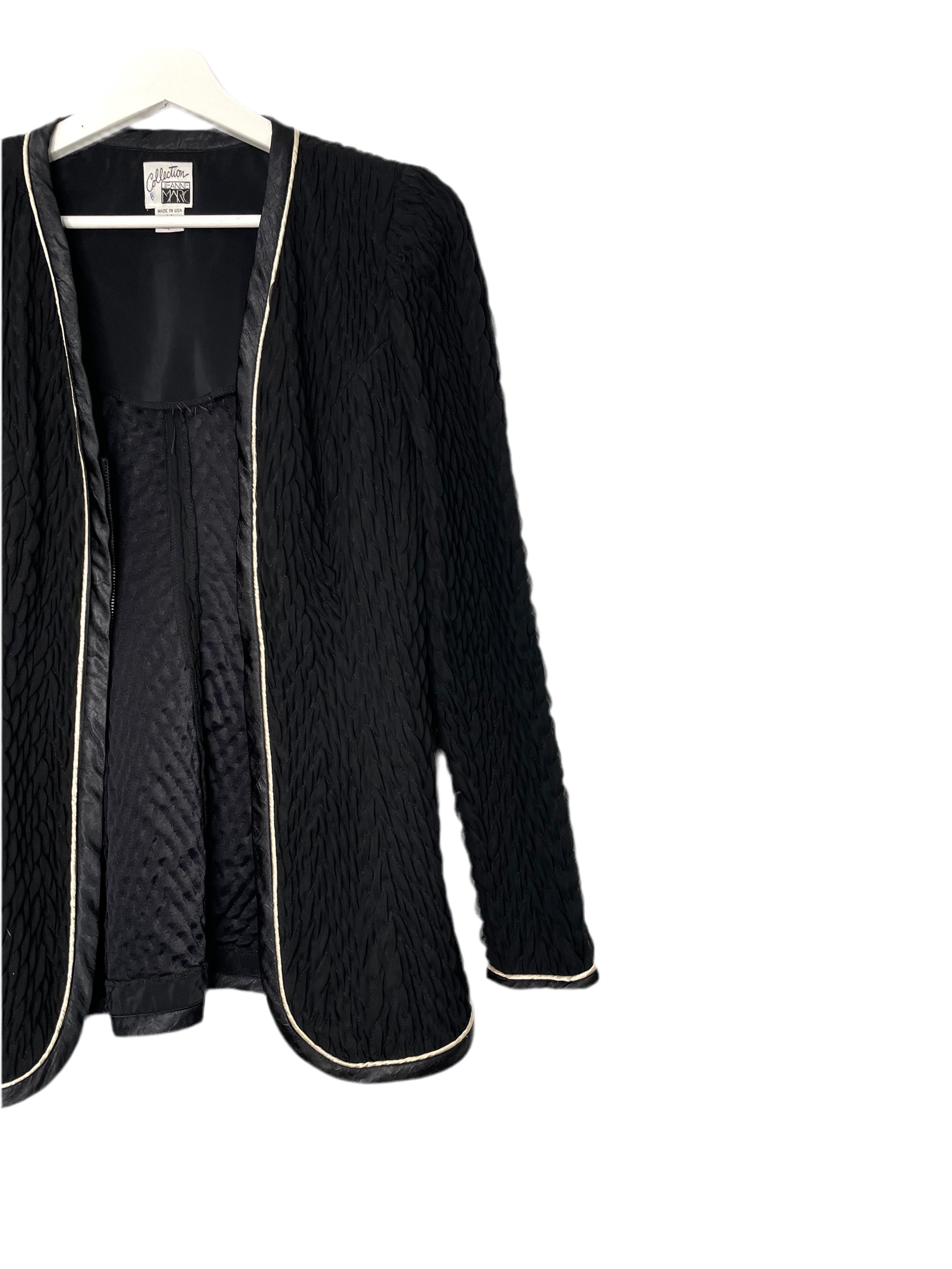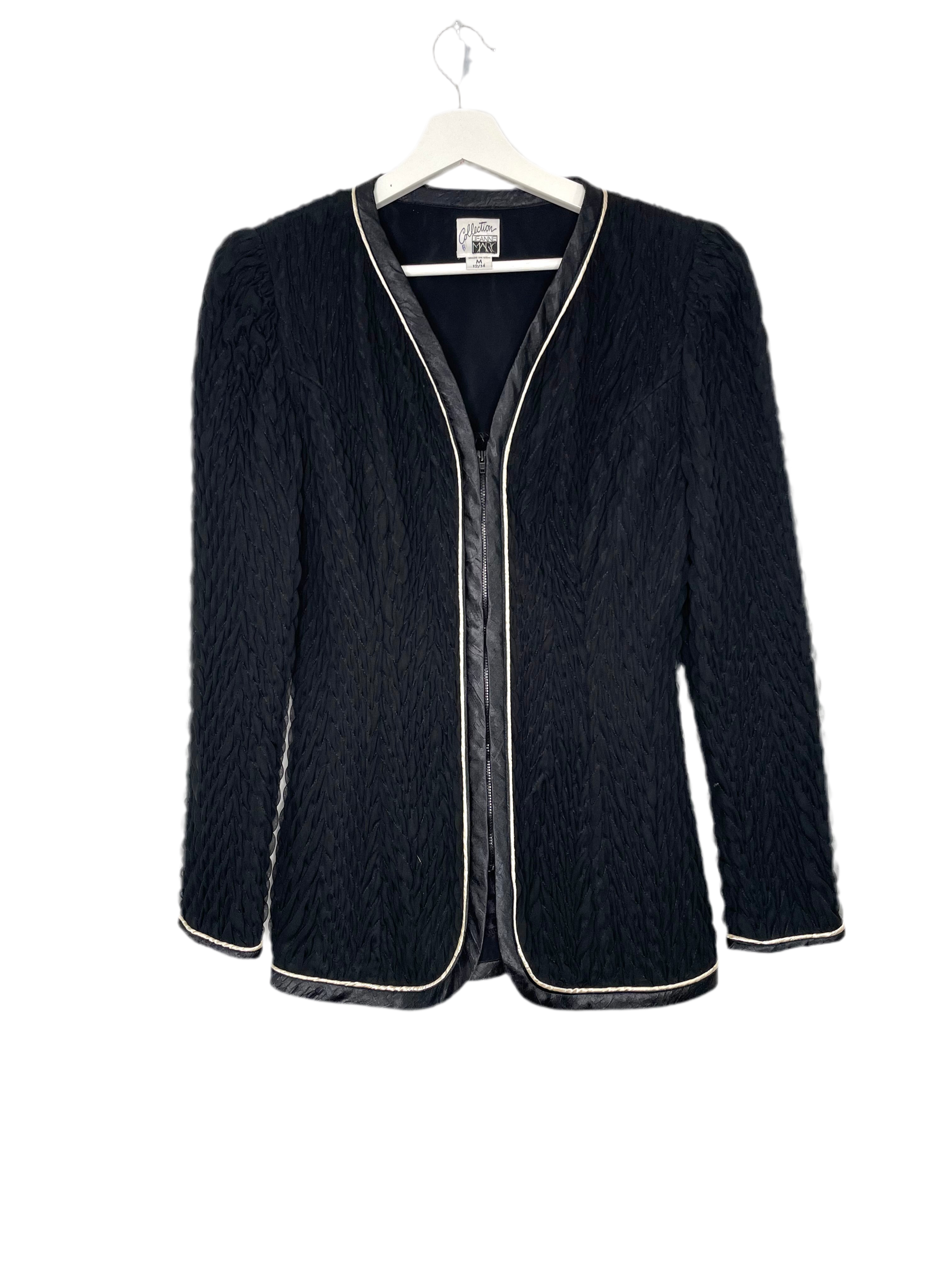 - Closure: Front zipper closure for a sleek, modern update to the traditional blazer style.