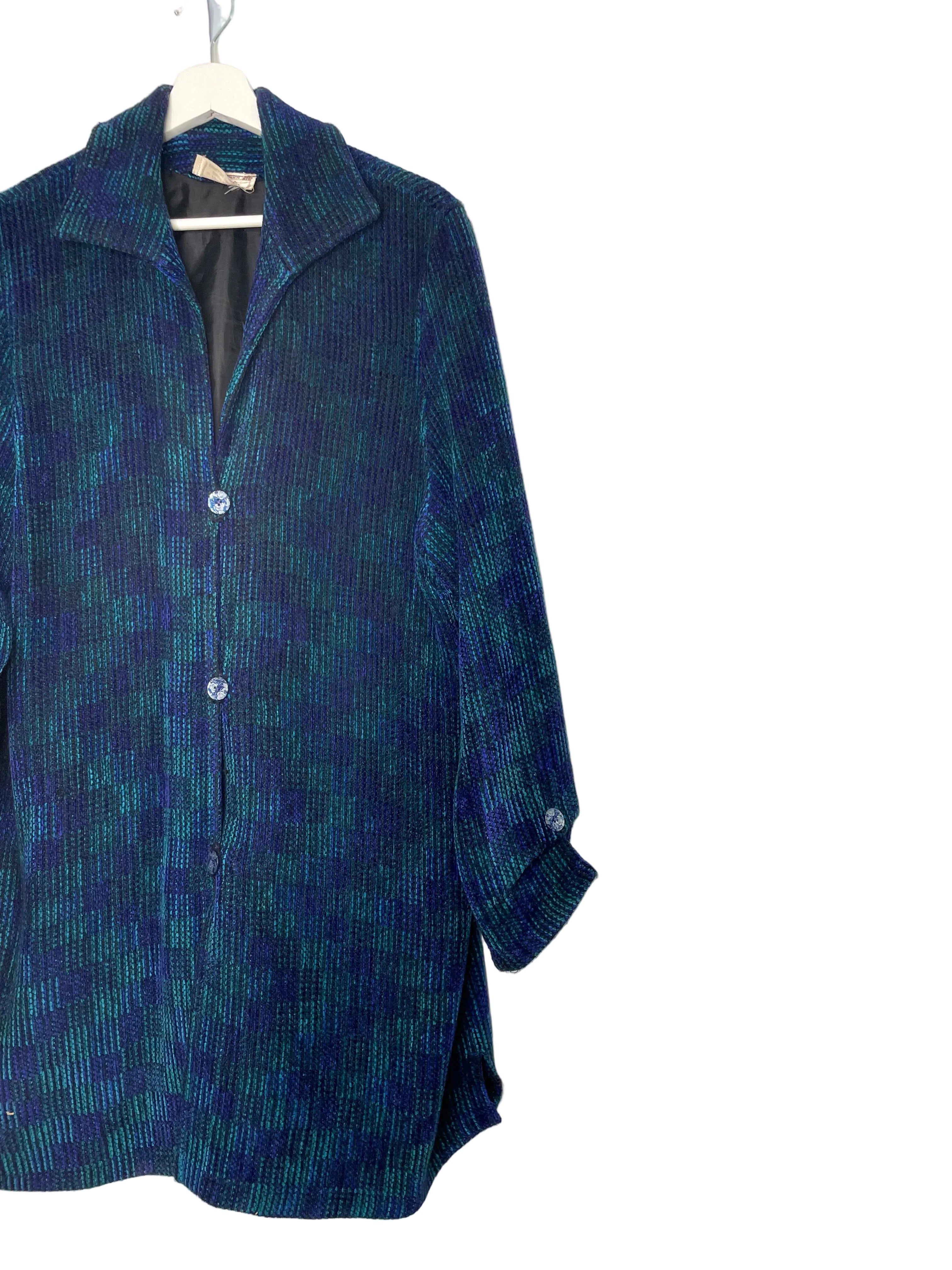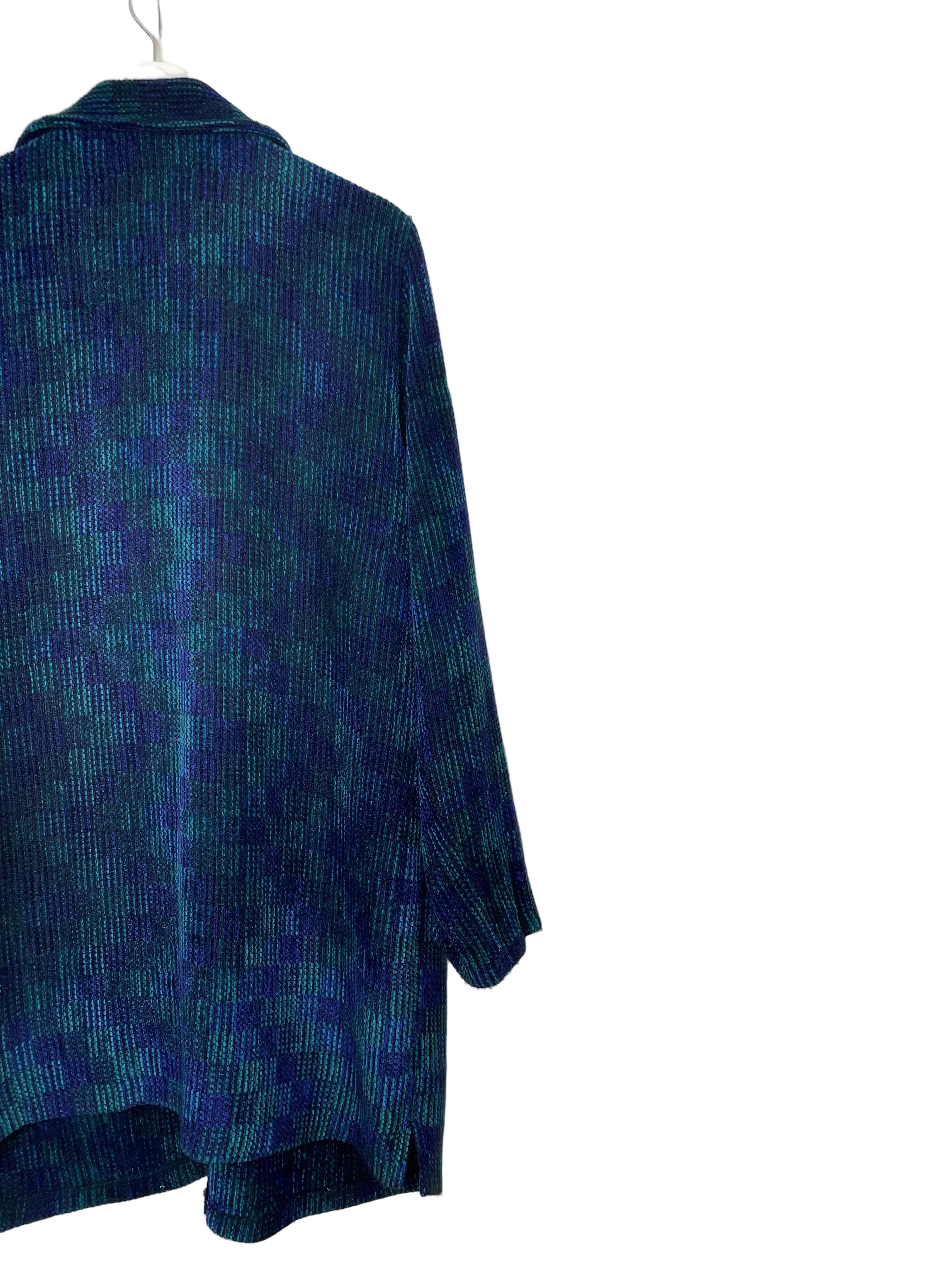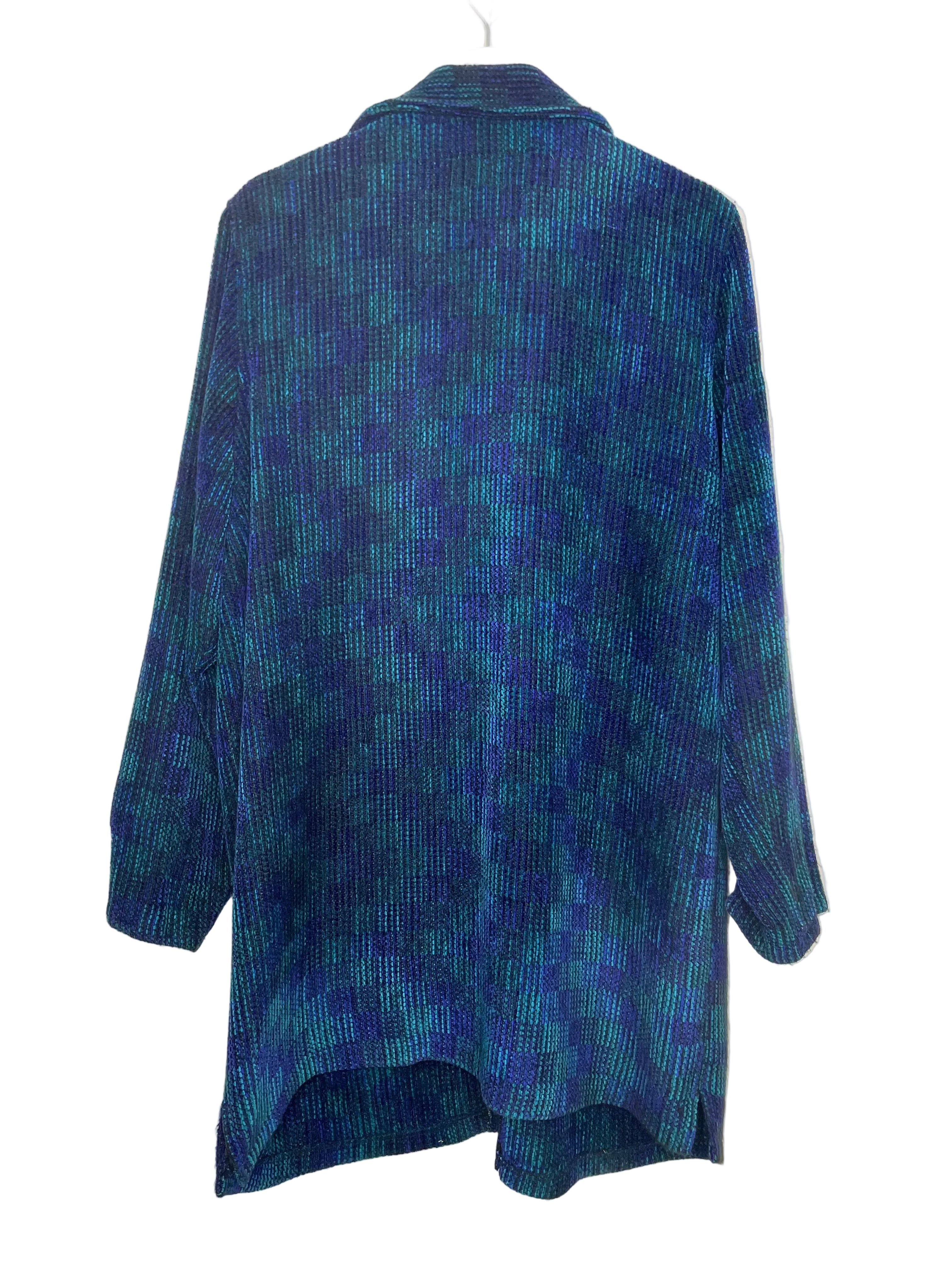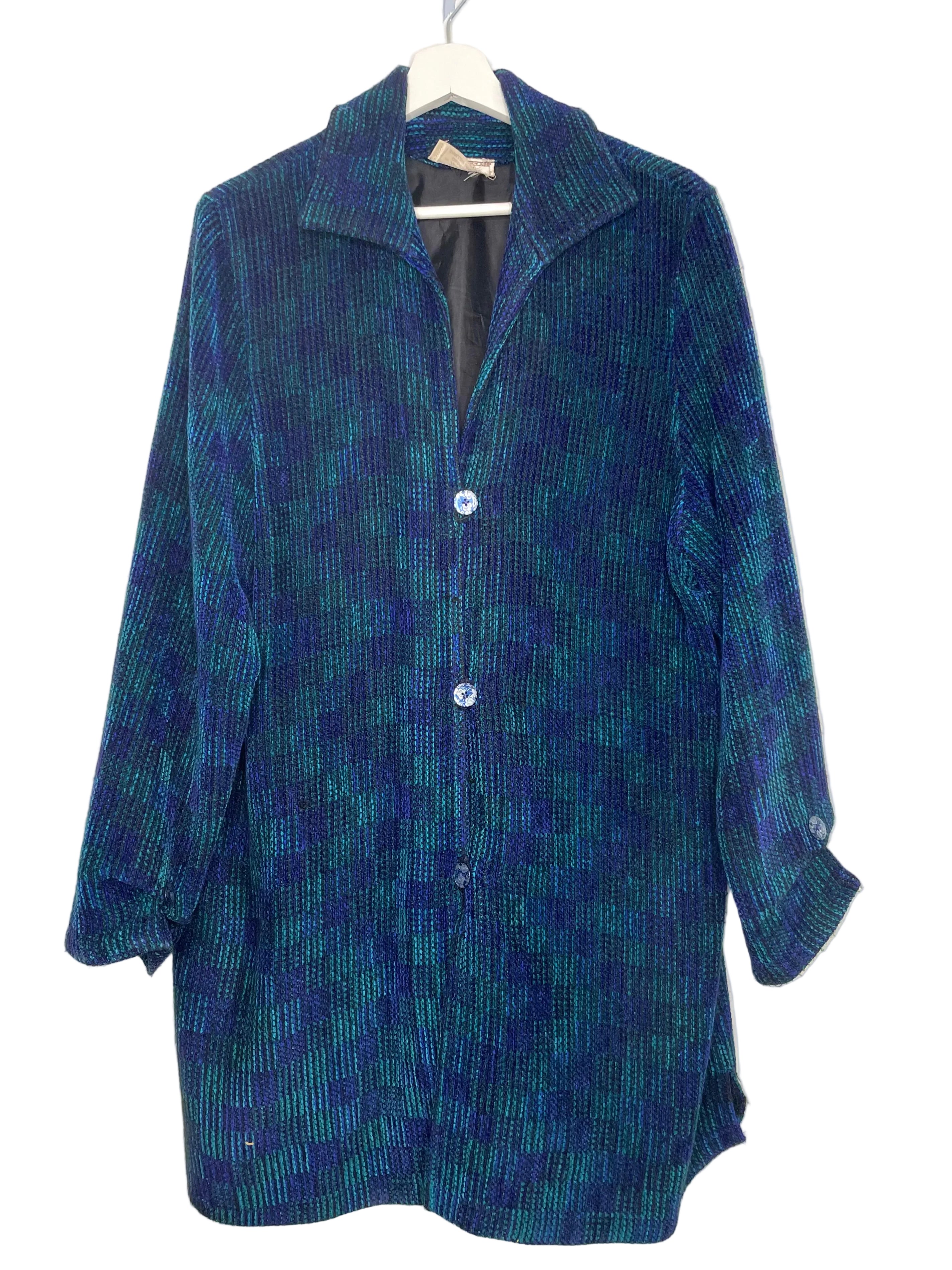 - Style and Type: This is a hand-woven, "art-to-wear" Cardigan with a relaxed fit.