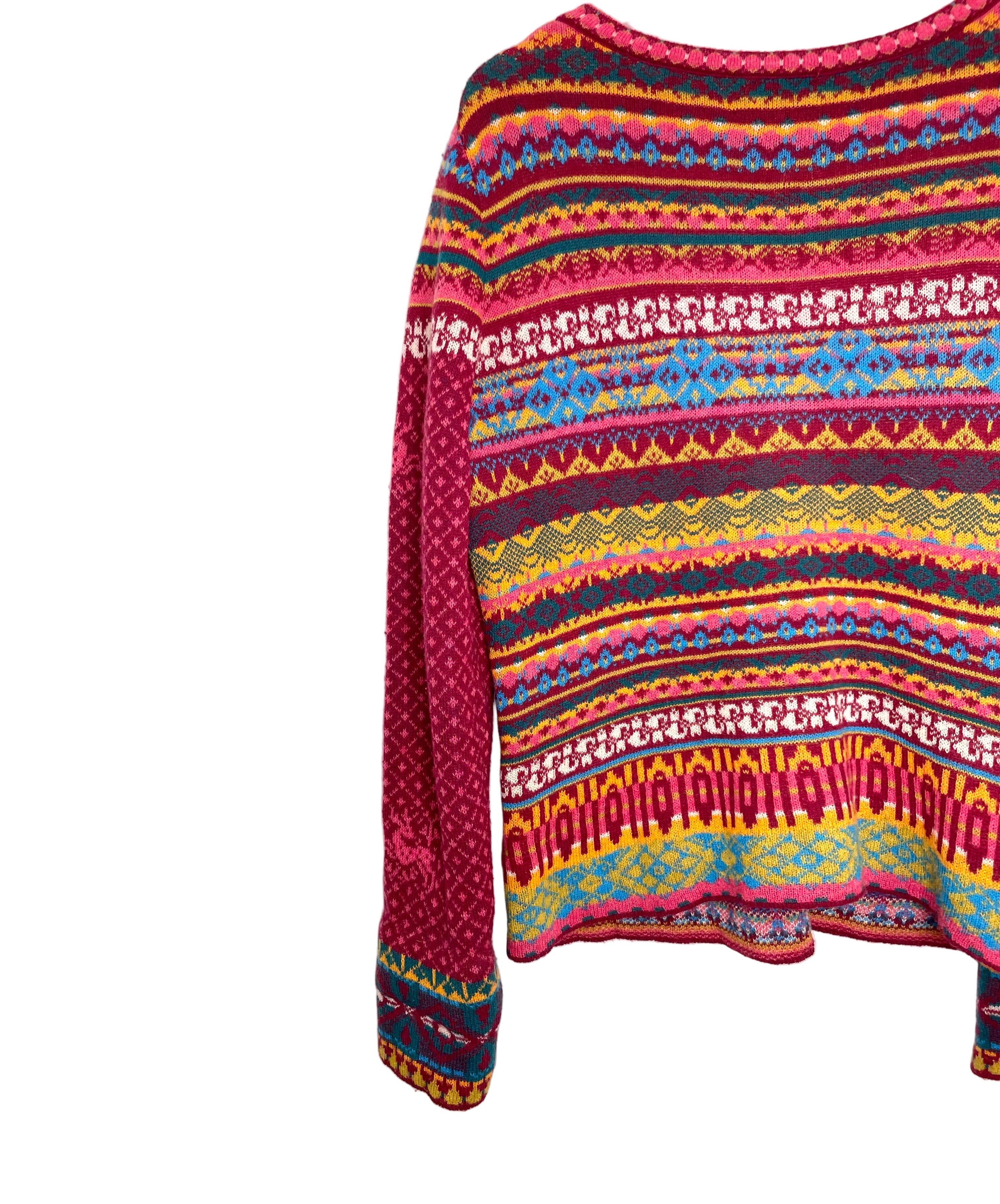 - Vintage Multi-Colored Wool Knit. Made from 100% wool with a rich blend of colors, showcasing timeless craftsmanship and retro charm.