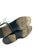 - Heel: A low, sturdy, stacked heel designed for comfort and durability in the riding style.