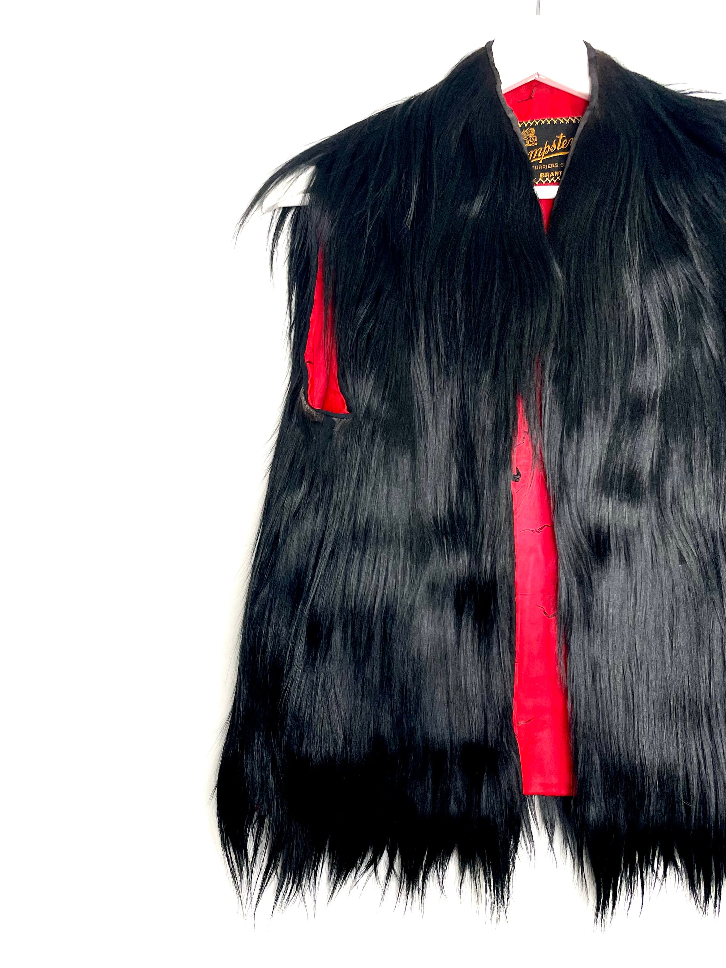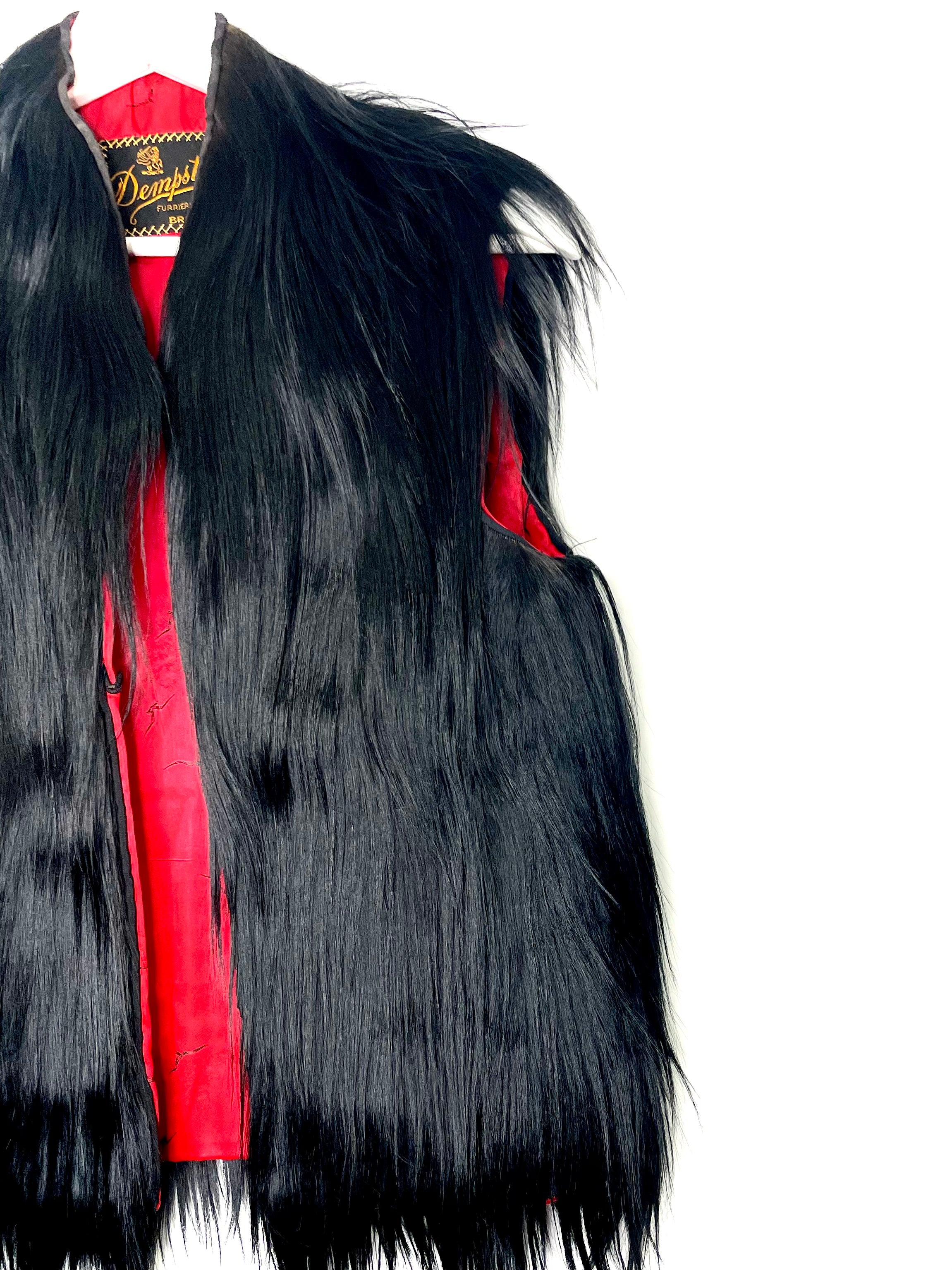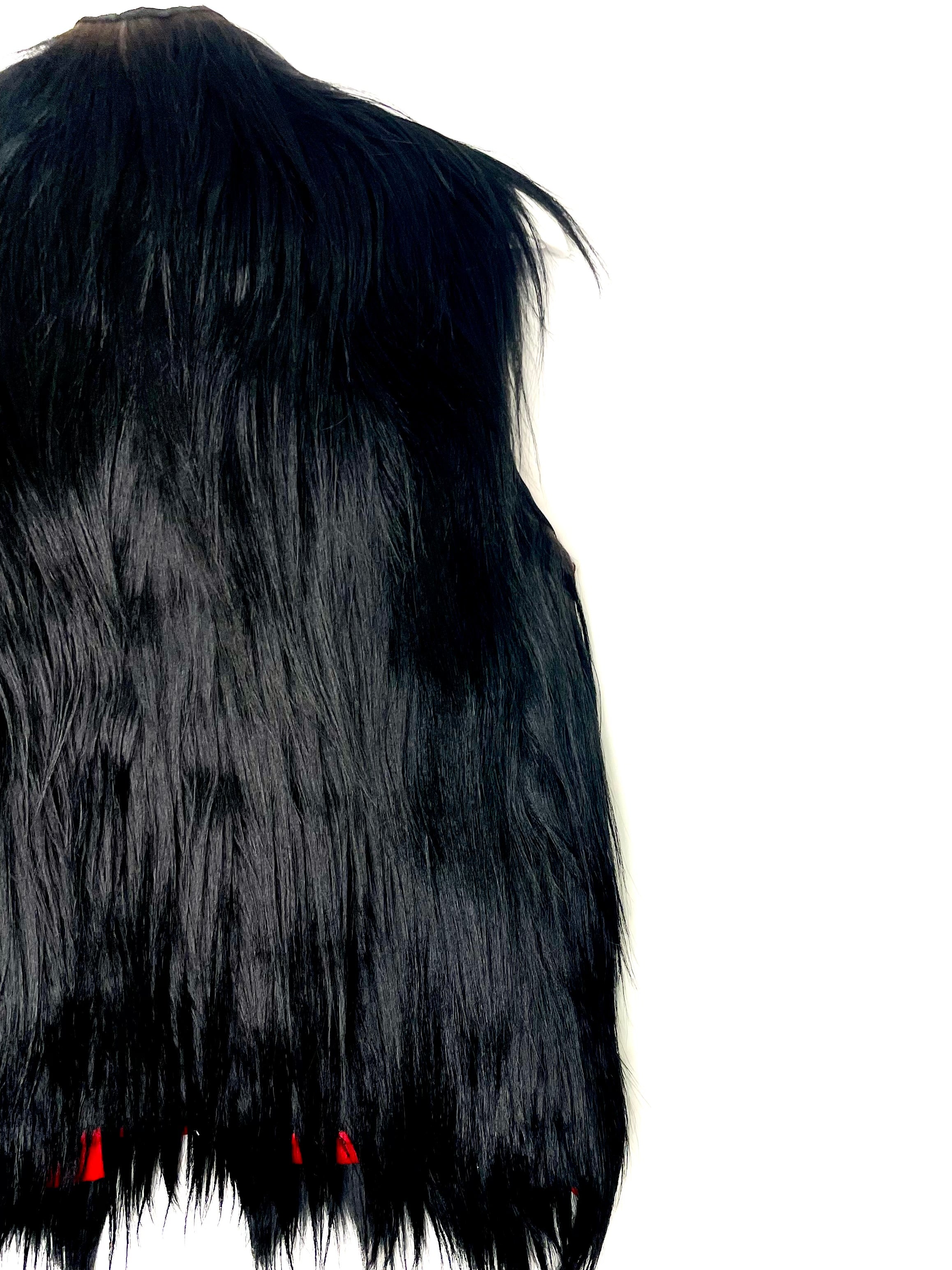 - Material: Long black fur — soft, plush, and luxurious with a rich vintage texture.
