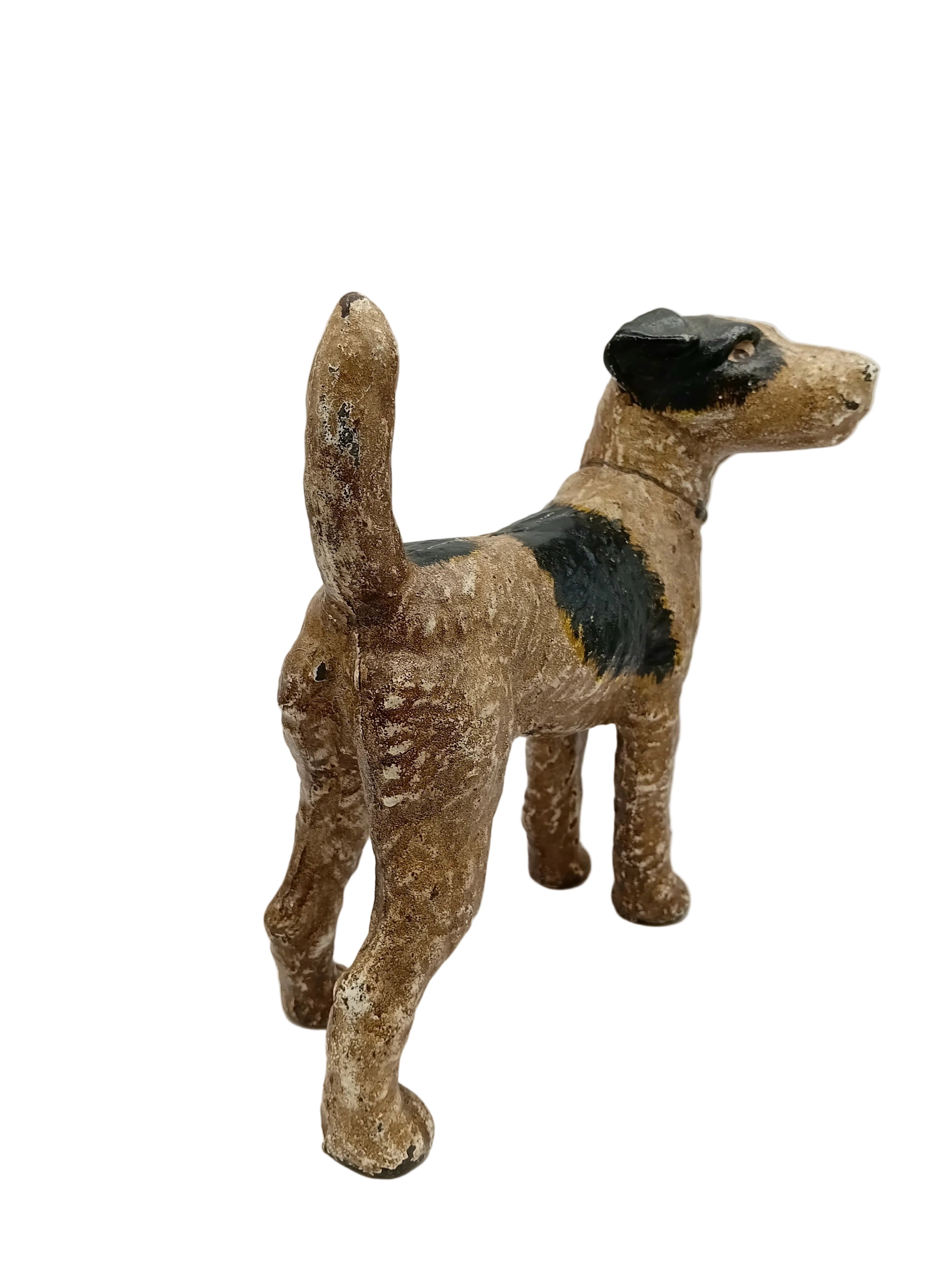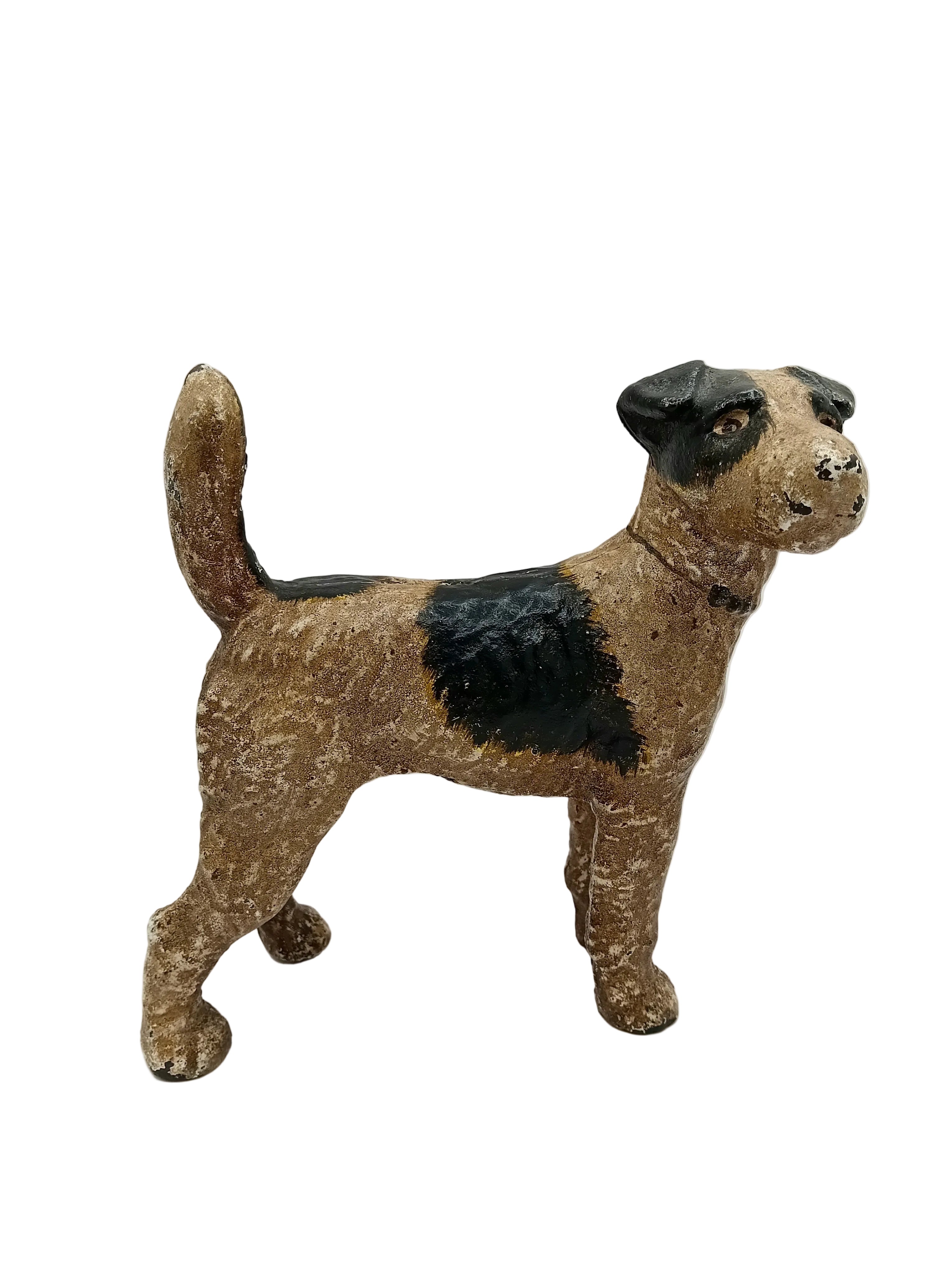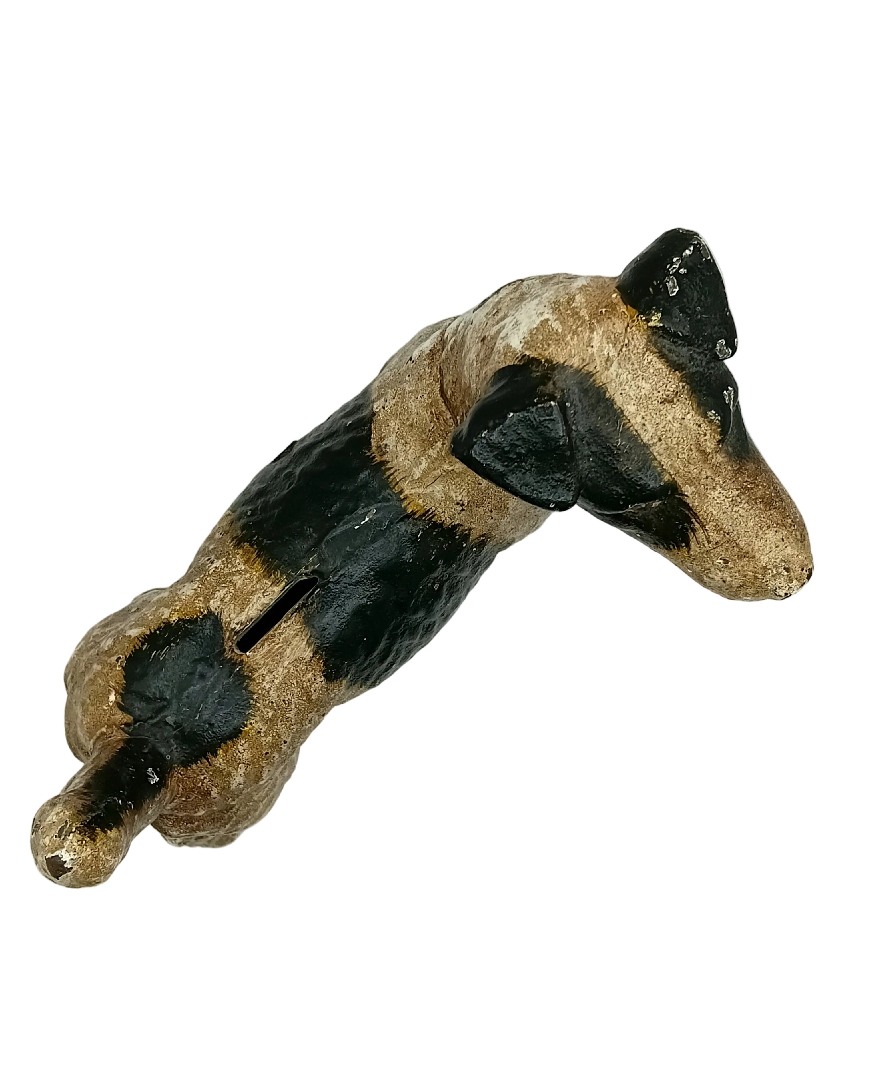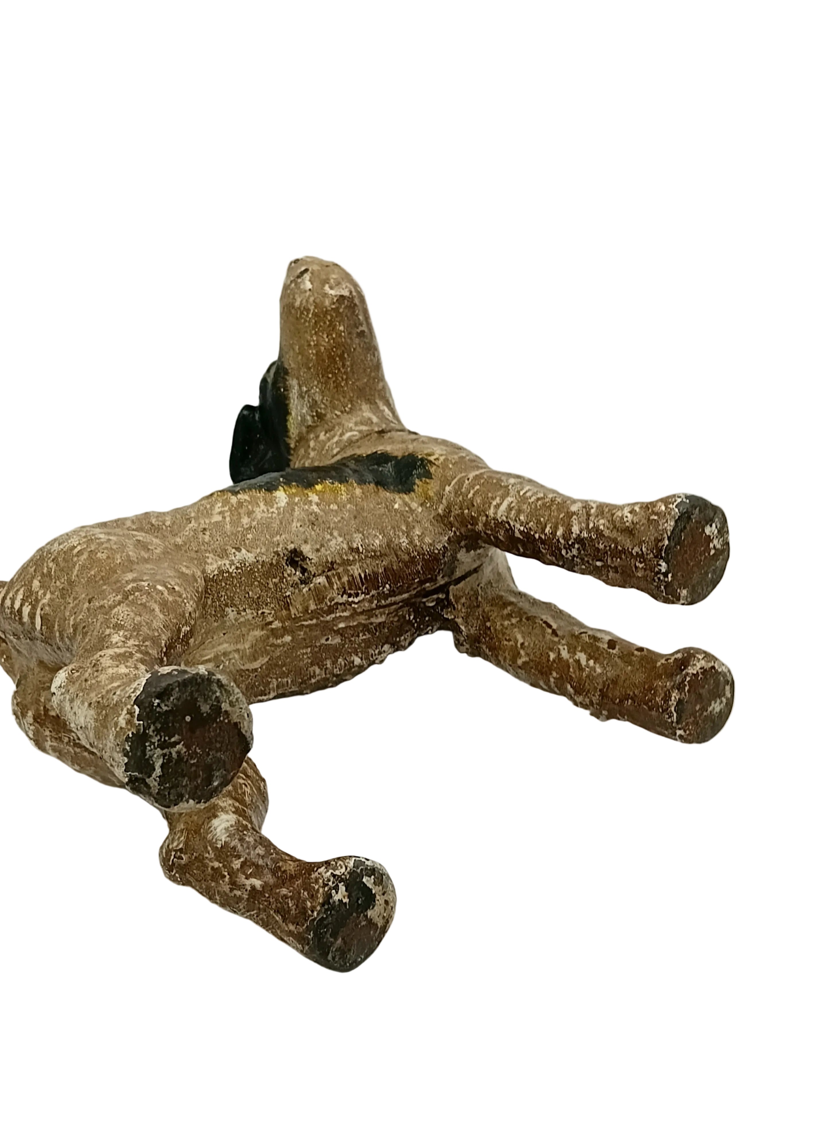 - Material: The piece is made of solid cast iron, a heavy and durable material commonly used for household items and toys in the early 20th century. The casting proces involved two pieces joined with a flathead screw.